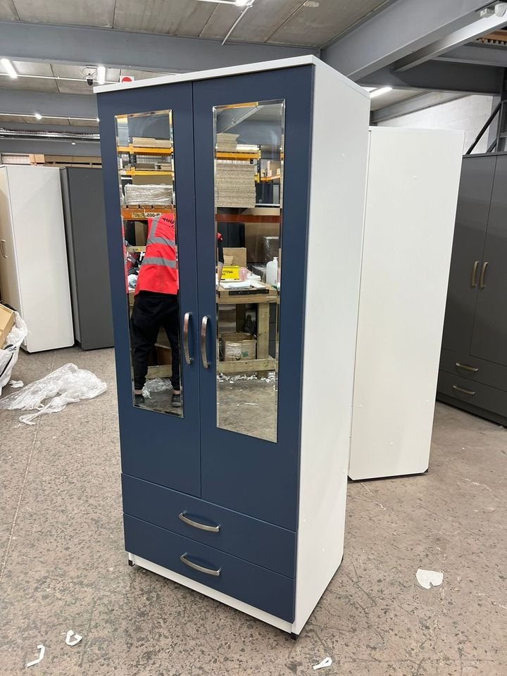 Brand New 2 Door Wardrobe with Shelves, Mirror & Drawers (Fully Assembled)